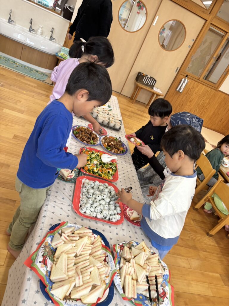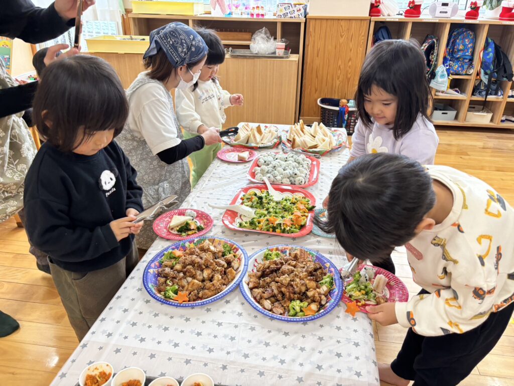 子どもたちは「サンドイッチにしようかな~」や「からあげおいしそう!」など、楽しみで仕方なかったようです。
