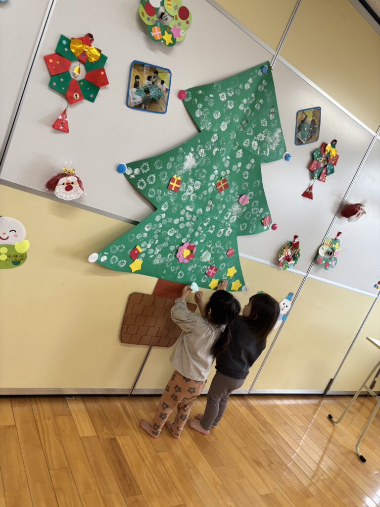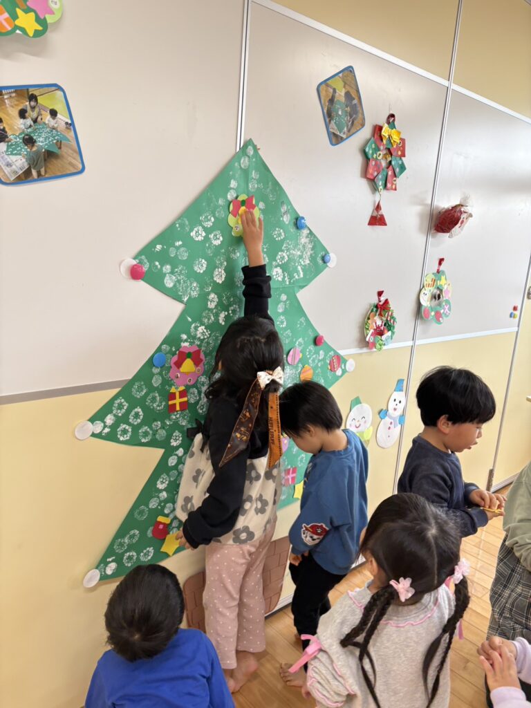 自分たちで作り上げたツリーを見て、満足そうな子ども達でした💕