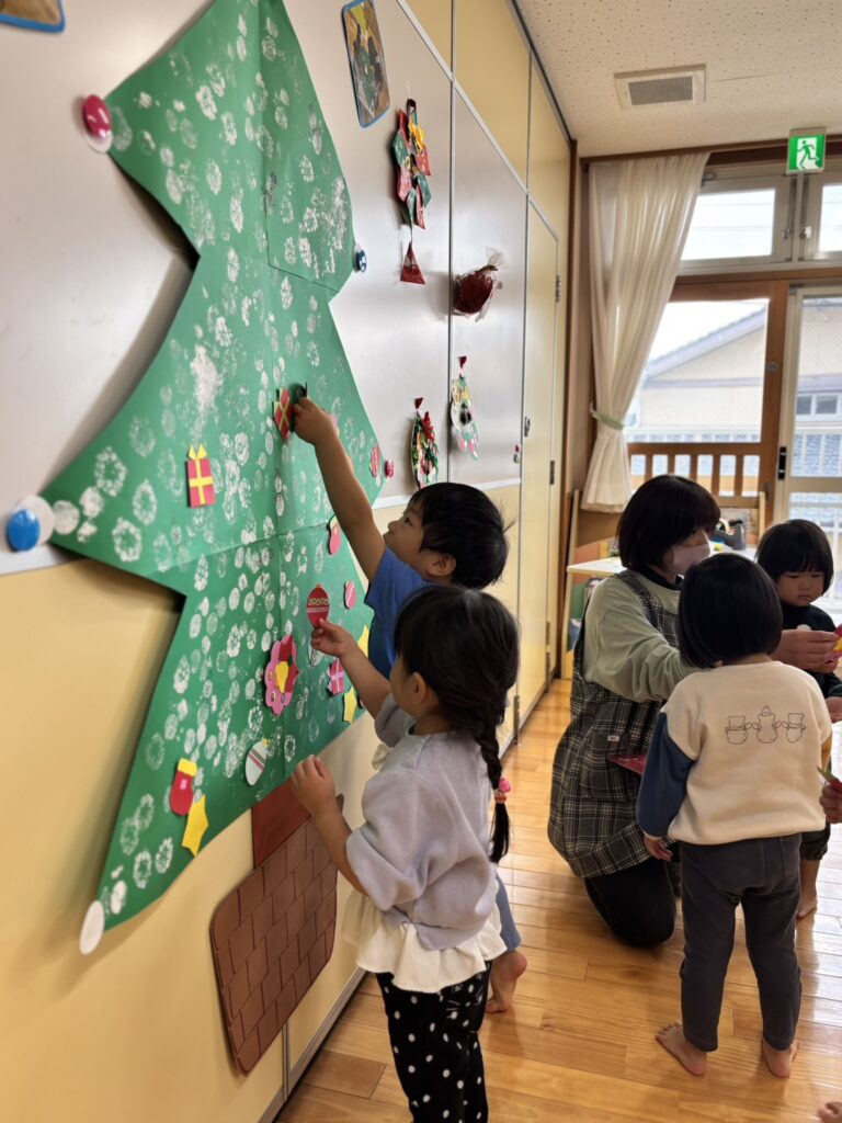 まずは子どもたちによるツリーの飾りつけ🎄✨